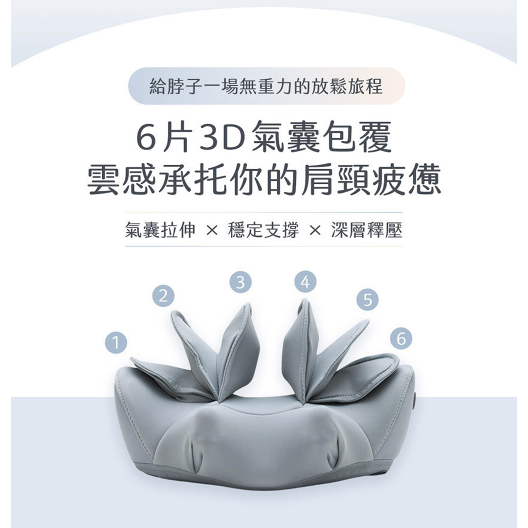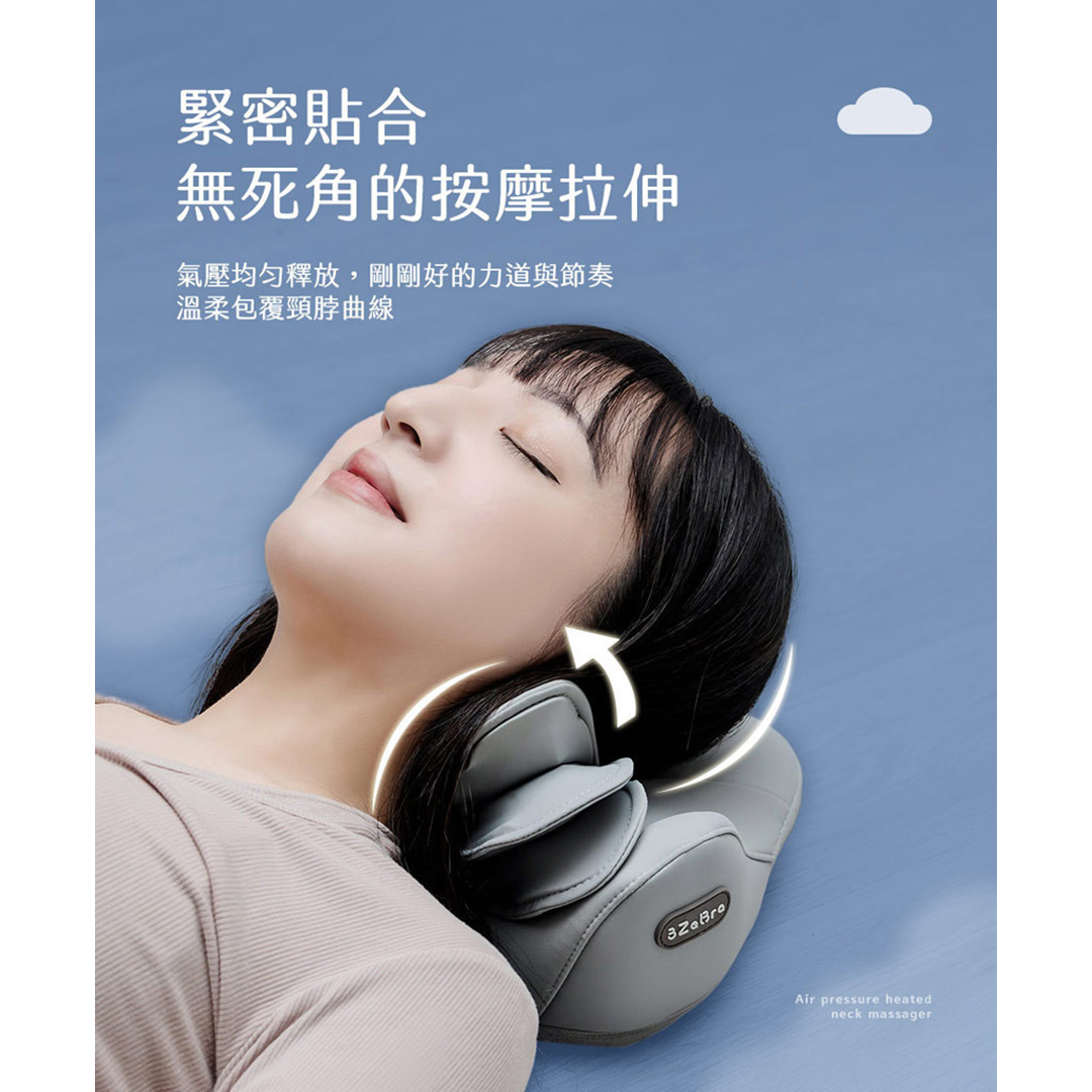 瞓覺瞓捩頸??工作導致肩頸又酸又緊??台灣3ZeBra推出朵朵枕 氣壓熱敷頸部按摩器,在家也能享受專業按摩師的按摩體驗。6片3D分層式氣囊,緊密貼服無死角按摩拉伸! 指壓按摩頭設計,真正按到要害位,釋放肩頸深處疲勞!