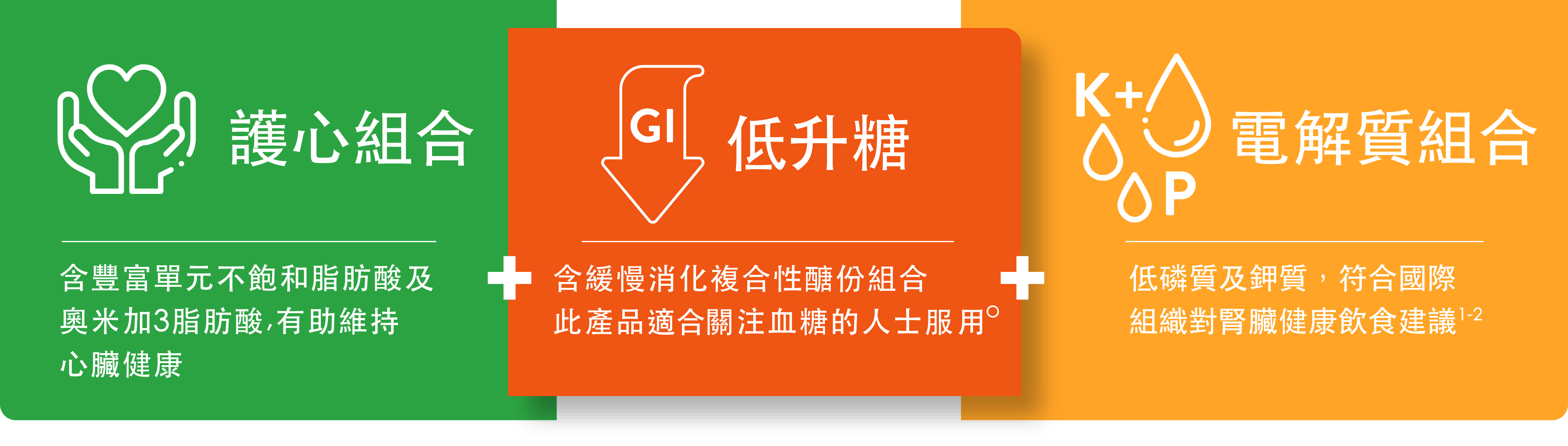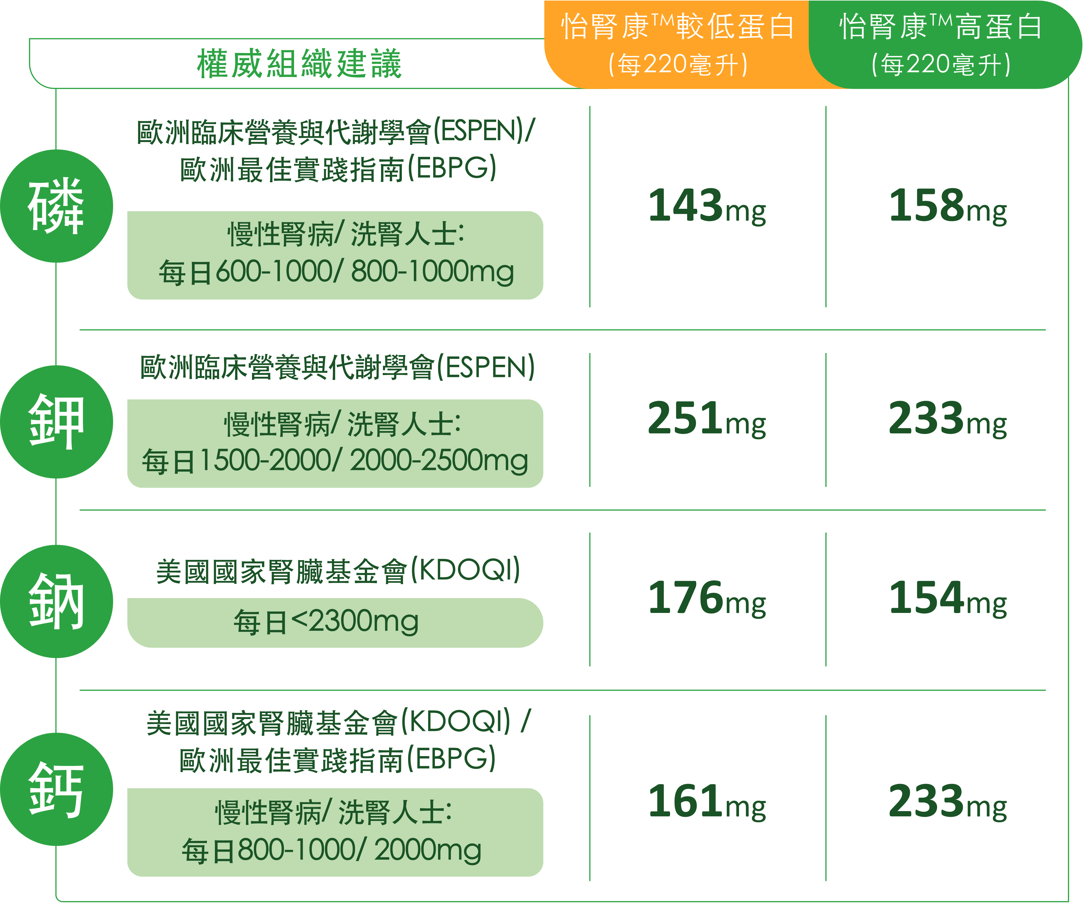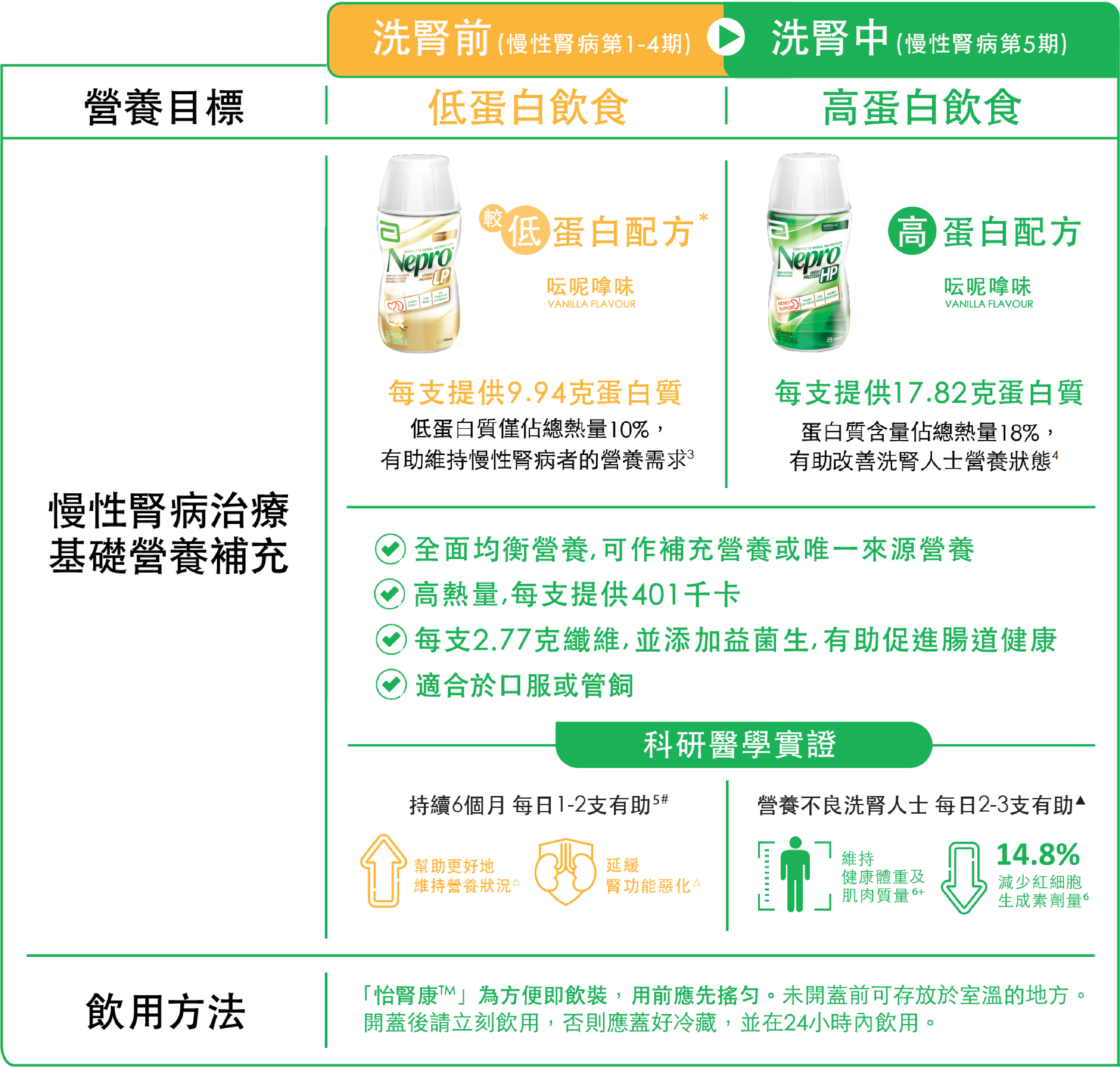 含高熱量及豐富蛋白質,有助補充病人於洗腎中流失的營養